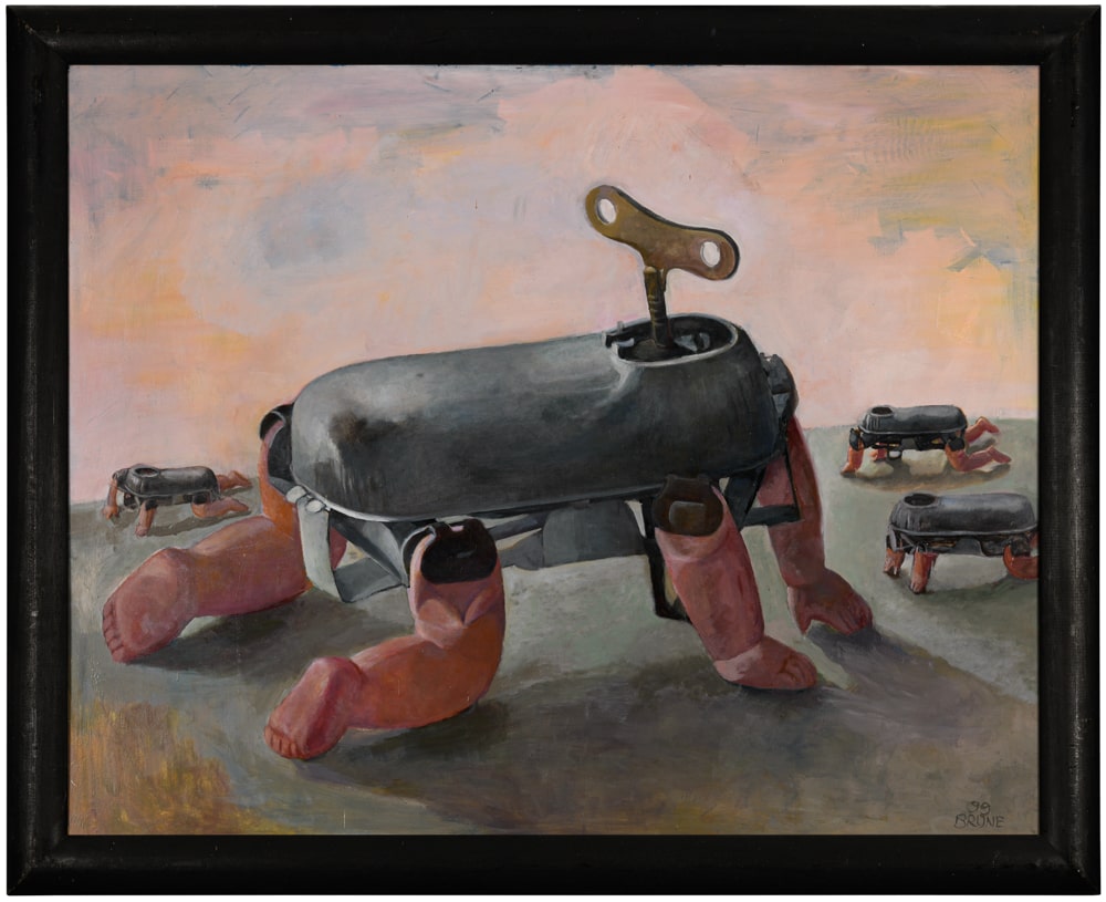 Gudrun Brüne | Der aufgezogene Kriecher, 1999Der aufgezogene Kriecher 1999 Mischtechnik auf Hartfaser 100 x 80 cm