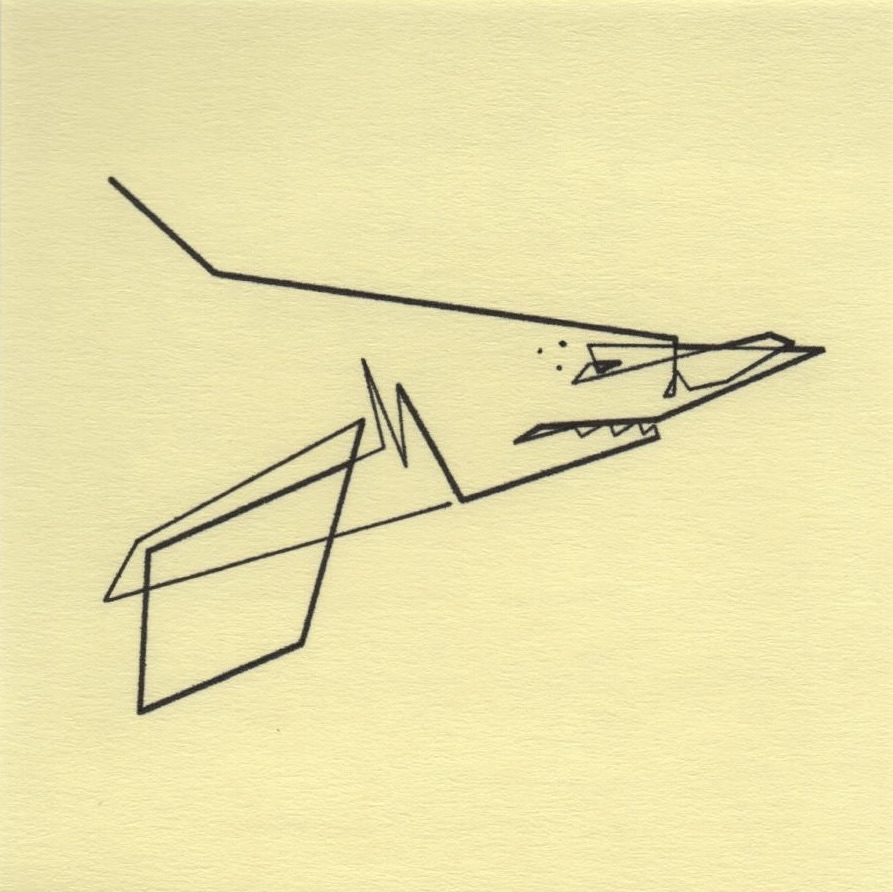 Mo Ganji’s single line engages with the daggernose shark — a slender coastal shark distinguished by its elongated, blade-like snout — as a reduction to essential presence. The continuous line offers a restrained suggestion of form, one that may be read as “shark” yet remains open to other meanings. By letting detail recede, Ganji allows essence to surface before the certainty of classification takes hold.
