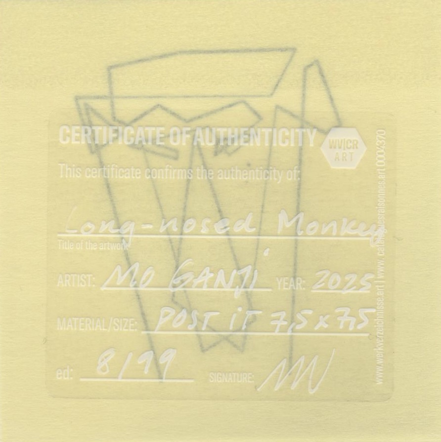 Mo Ganji’s single line engages the Long-nosed monkey — a large arboreal primate adapted to riverine forests, mangroves and coastal swamps — by allowing its essential coherence to come forward without emphasis on peculiarity or visual distinction. The continuous line gathers a concentrated presence, enough to suggest a being while remaining open to meanings beyond the category of “monkey.” In this distillation of the core, form appears before feature or familiarity defines it.