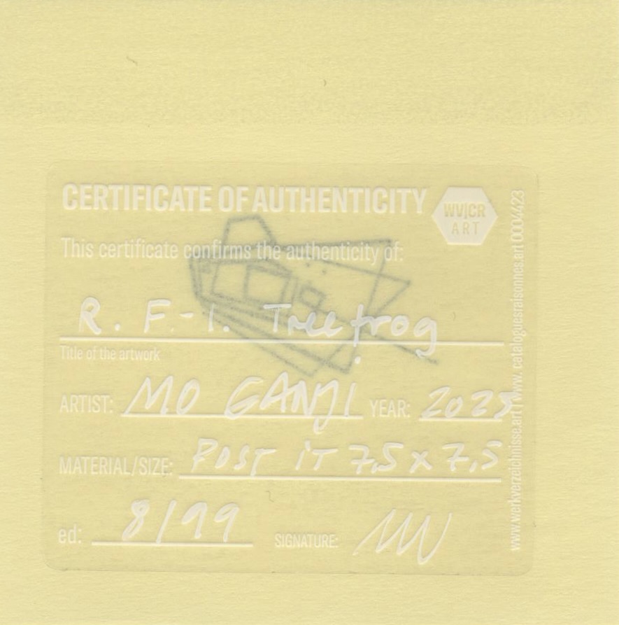 Mo Ganji focuses on the Rabbs’ fringe-limbed treefrog — a large arboreal amphibian once inhabiting humid montane forests — through the discipline of the single line, allowing essence to surface by deliberate reduction. The unbroken line withdraws from anatomy and spectacle, leaving a concentrated presence that signals life without fixing it fully to the idea of “frog.” In Ganji’s approach, the line remains open, capable of holding other meanings, other beings.