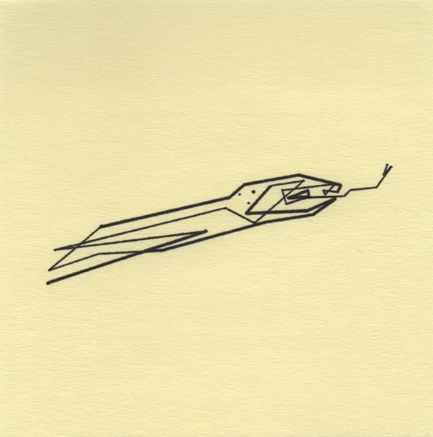 Ganji’s single line opens a space in which the snake can be encountered beyond danger or revulsion. It allows attention to rest on a life reduced to the edge of inhabitable space, suggesting how survival can hinge on the preservation of a single place — and how absence elsewhere often remains unnoticed once disappearance has already been accepted.