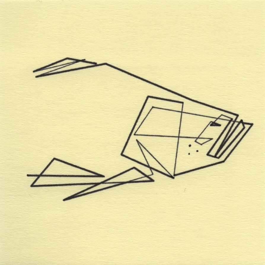 Mo Ganji turns his attention toward the Siamese giant carp — a large freshwater fish historically inhabiting major river systems of Southeast Asia — by allowing the single line to move toward essence rather than mass or magnitude. The line gathers the being into a reduced coherence, setting aside size, strength and rarity so that presence can surface without emphasis. In Ganji’s understanding, the line is not fixed to the fish alone; it remains open, acknowledging that every figure is also a human concept provisionally assigned to a living form.