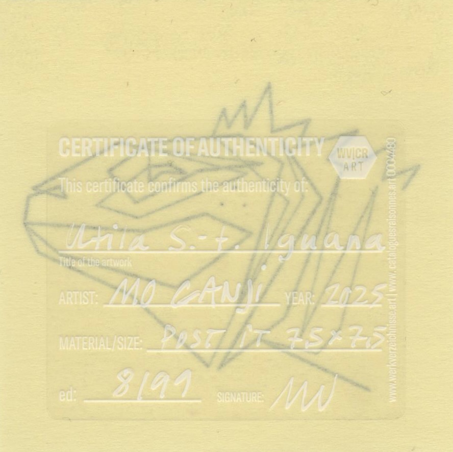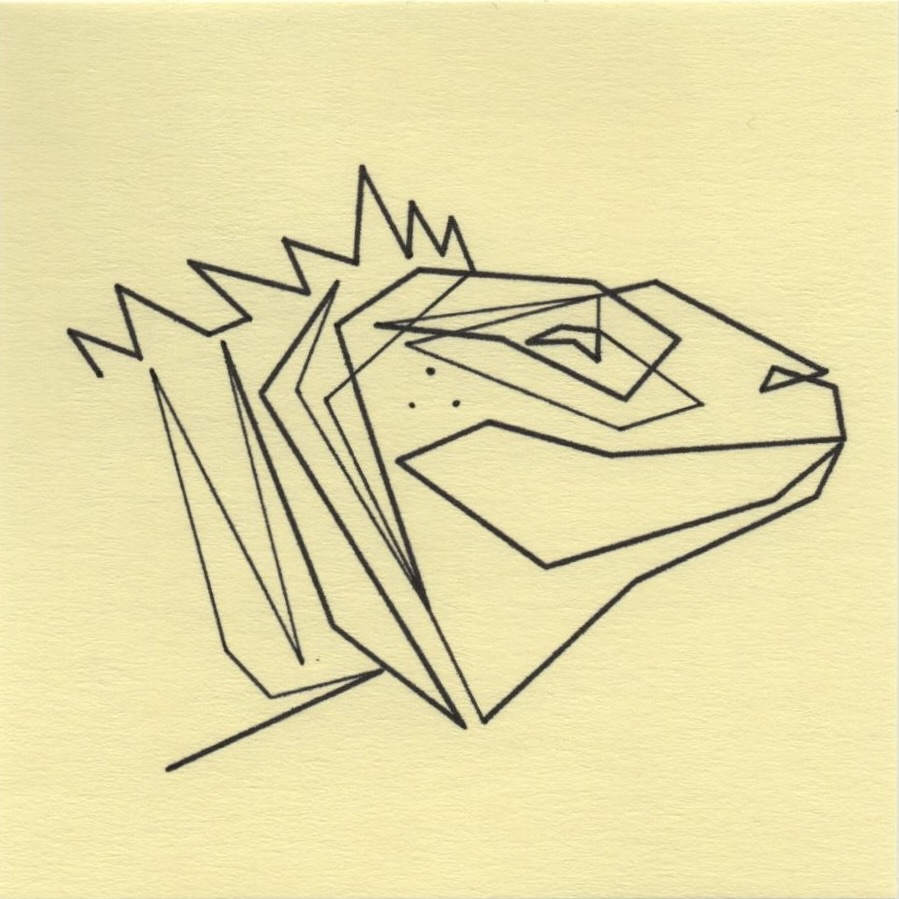 Mo Ganji turns toward the Utila spiny-tailed iguana — a medium-sized reptile uniquely adapted to mangrove ecosystems — by letting the single line move toward essence rather than specialization or rarity. The line condenses the being into a reduced coherence, setting aside habitat specificity, texture and posture so that presence can surface without description. In Ganji’s understanding, the line is not bound to the iguana alone; it remains open, reminding us that every form is also a human concept temporarily assigned to a living continuum.