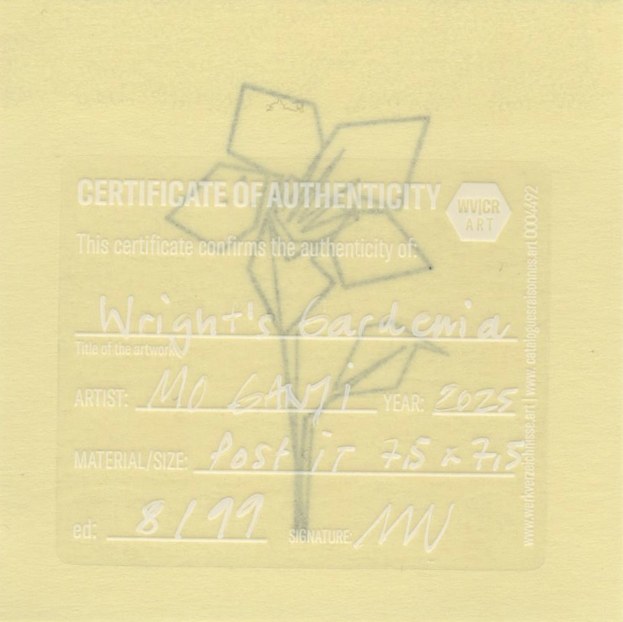 Mo Ganji turns toward Wright’s gardenia — a small tree or shrub endemic to the dry forests of Hawaiʻi — by letting the single line move toward essence rather than floral beauty or cultural symbolism. The line condenses the being into a reduced coherence, setting aside blossom, scent and ornamental association so that presence can surface without description. In Ganji’s understanding, the line does not belong to the plant alone; it remains open, reminding us that every form is also a human concept provisionally placed upon a living process.